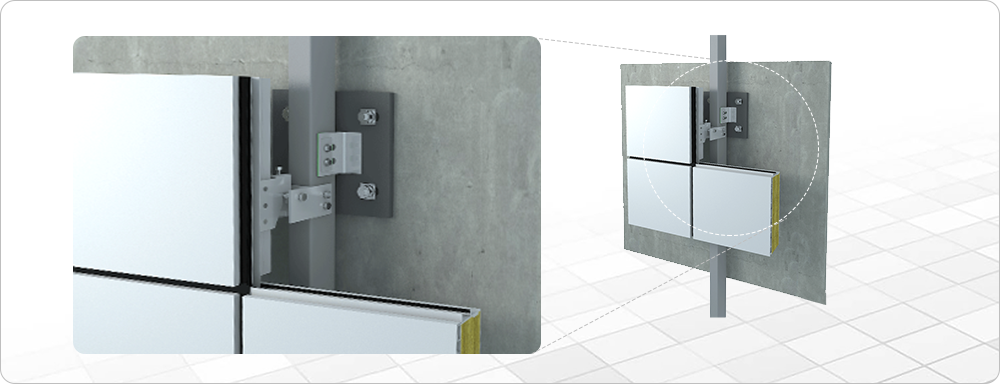 鋁蜂窩復(fù)合裝飾保溫板裝配式幕墻系統(tǒng)由單元板塊和龍骨掛接系統(tǒng)組成。其中,單元板塊由面板、鋁蜂窩、單元板塊鋁邊框、保溫層、密封防水膠條等組成。龍骨掛接系統(tǒng)由安裝在現(xiàn)場主體結(jié)構(gòu)上的龍骨及配套掛件組成。